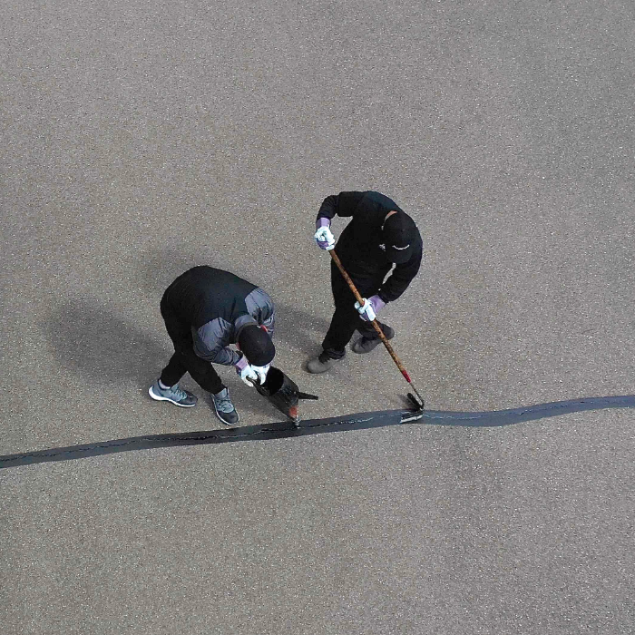 Black Dawg’s premium rubberized crack sealer is heated to a liquid, at 400 degrees, and poured into structural cracks. The hot rubber is scraped out by hand and allowed to cool, sealing the crack and protecting it from water penetration and freeze/thaw damage. The specialized rubber remains pliable in harsh winter temperatures, resisting splitting and further degradation. There are no viable do-it-yourself options for high quality crack filler.